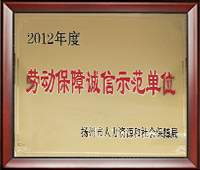 ◇ 榮獲2012年揚(yáng)州市勞動保障誠信示范單位